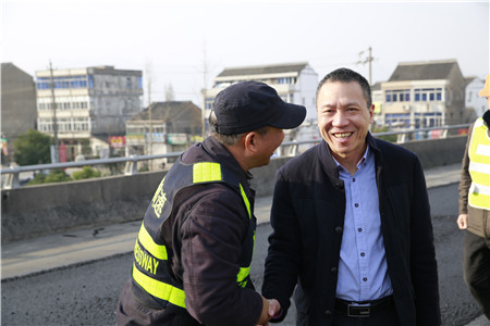 在施工現(xiàn)場,張建平對路面專項養(yǎng)護(hù)綜合督查組馮濟(jì)爐和葉榮江兩位同志說,你們就是公司的眼睛,要把握施工現(xiàn)場動態(tài),把好施工質(zhì)量和安全關(guān);你們是公司的手,要督促工程保質(zhì)保量快速推進(jìn)。這是一次確立科學(xué)養(yǎng)護(hù)理念、鍛煉管養(yǎng)人才,展示公司硬實力的機(jī)會。看著這兩位老同志被陽光曬得黝黑的臉龐,張建平緊緊地握住他們的手,連聲對他們說:“你們辛苦了,你們辛苦了!”