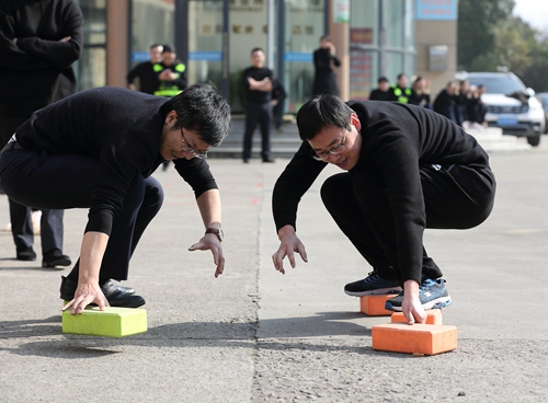 本次活動分團隊個人單項賽,團隊賽包括“二龍戲珠”“背靠背”“集體跳繩”“拔河”4個項目個人單項“摸石過河”“夾乒乓球”“跳繩”“定點投籃”“俯臥撐”“仰臥起坐”6個項目組成。每個賽場氣氛活躍加油聲、喝彩聲此起彼伏。其中拔河比賽最為熱鬧,參賽隊員個個緊握長繩,蓄勢待發,隨著裁判的一聲哨響,他們“一二三”的口令聲中卯足勁、齊發力,場邊助威聲響成一片。“摸石過河”比賽中,身體的任何部位不得直接觸碰除河石之外的支撐物該項目著重在手腳配合,“河中”巧妙移動石頭,直至到達終點。