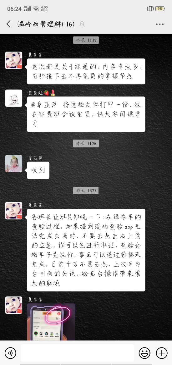 培訓采取集中學習與線上學習相結合,理論知識與現場操作相結合、互動交流與相互提問相結合的方式開展,通過釘釘、微信等學習平臺天,各班班長組織班員開展崗前五分鐘提醒班組集中學確保每一名收費人員能夠熟練掌握新收費系統的各項操作流程。此外,各班班長及時梳理匯總收費員們在實際操作中遇到的問題并上傳至管理群群中全員參與一起討論學習。遇到無法解決的問題時,所負責人第一時間與上級主管部門溝通尋求最佳解決方案,并發布到群里,明確操作流程和統一相關政策解釋工作。