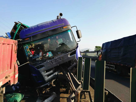 8月25日凌晨4點,甬臺溫高速溫向1648+7路段,一輛運啤酒的大貨車因司機疲勞駕駛,導致車輛撞上中央護欄而側翻,啤酒灑滿一地,后方兩輛貨車避讓不及造成多車事故。
