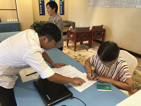 圖為股東在認真簽訂股權轉讓協議