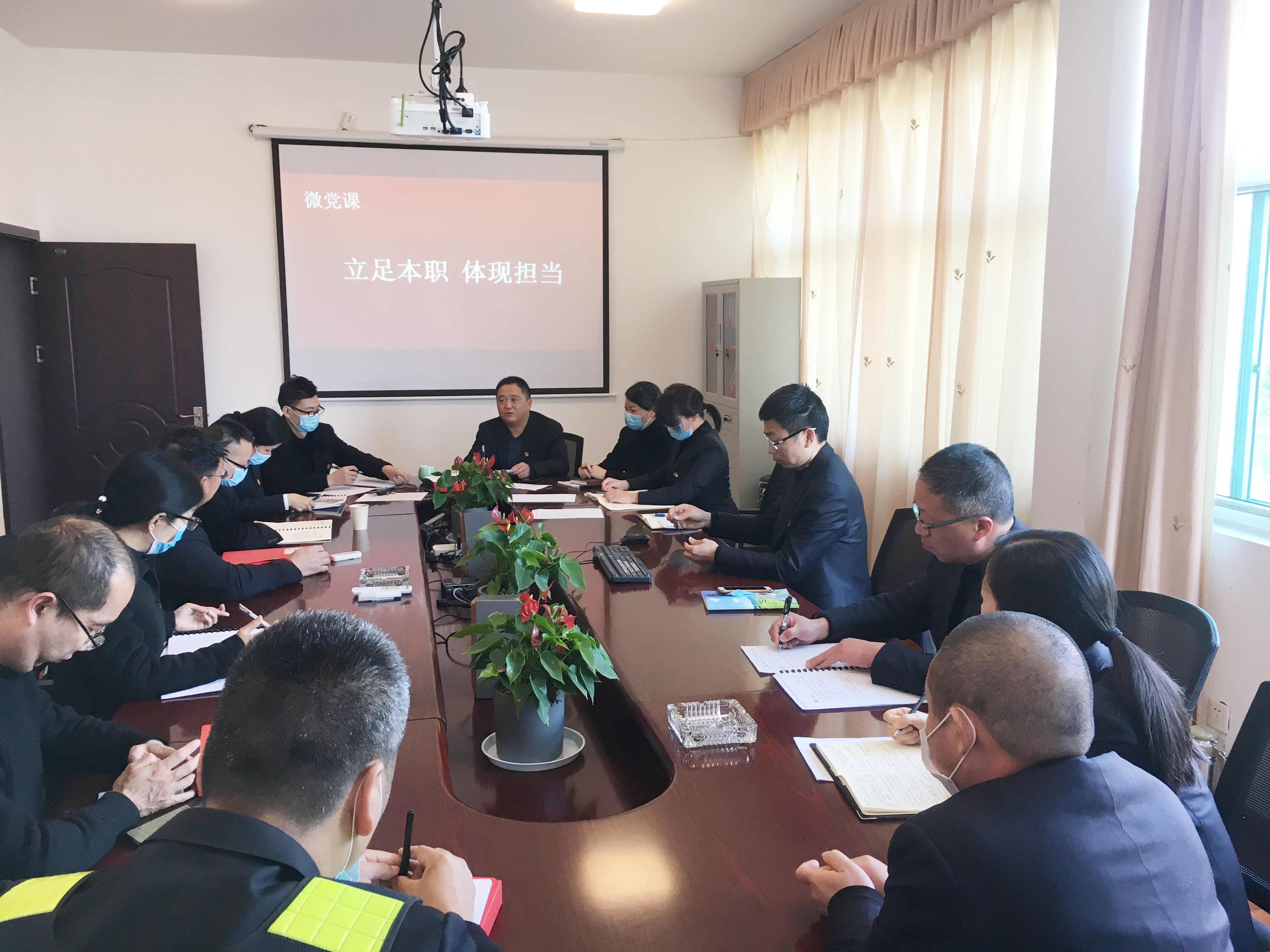 圖為支部書記上黨課現場 隨后,王益民為各黨員上了一堂《立足本職、體現擔當》的微黨課。 夏蓮萍