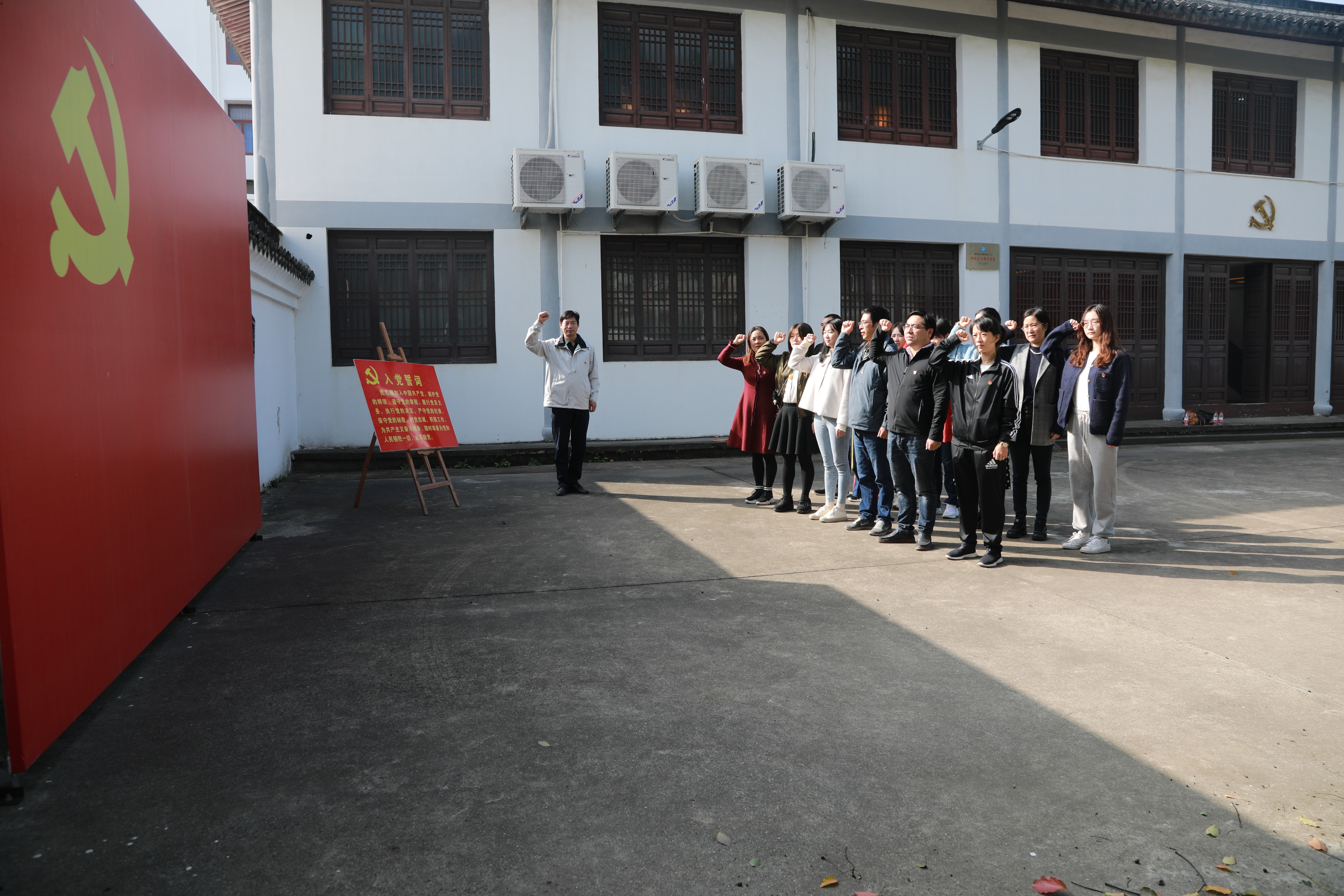11月26日,由黨委副書記、副總經理陳保衛,黨委委員、總會計師章彩霞帶隊,公司行政支部與綜合支部共同組織開展了“憶入黨初心,訪紅色足跡”主題黨日活動。 戴大夫故居在土地革命戰爭時期是黃巖縣(及今路橋區)革命活動的指揮中心,在抗日戰爭、解放戰爭時期又成為黨的重要活動據點。莊嚴的宣誓儀式,是對黨的鄭重承諾,也更加堅定了每位黨員的共產主義理想信念。聽故居的講解員講述歷史的故事,參觀黨史陳列室和戴大夫故居,回顧黨的光輝歷程,感受革命先輩敢為人先的革命精神,讓黨員們對黨的歷史有了更深的認識和感悟。