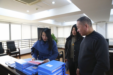 圖為檢查組檢查財務(wù)臺賬現(xiàn)場