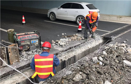 圖為施工現場 臺州市內環路(10+170~8#立交)工程于2018年3月10日竣工驗收,目前處于兩年的保修期范圍內,由于框架橋的結構特性和當地的地基特點,站西大道下穿跳車的問題一直無法得到有效解決,而這也成了影響內環路行車舒適度的首要問題之一。早在2018年6月12日,市政公司就組織施工單位對當時的路面進行了銑刨后重鋪瀝青路面的施工處理,但是經過9個月的運行沉降后,橋頭跳車問題再次出現。本著有險必修,有錯必究的原則,市政公司再次組織施工單位對該段路面的維修問題進行了現場論證,根據論證結果進行了修復性施工。